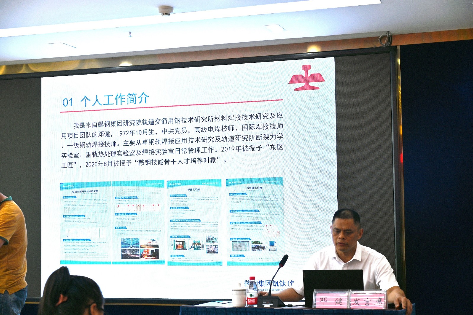 “東區(qū)工匠”攀鋼集團(tuán)研究院焊接實驗室鄧健講述了近年來個人所做的技術(shù)革新和團(tuán)隊取得的成就,表示將積極打造國內(nèi)外一流的知名專業(yè)化鋼軌焊接實驗室,持續(xù)保持攀鋼鋼軌國際領(lǐng)先水平。
