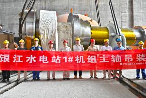 【攀水電】銀江水電站首臺(tái)機(jī)組主軸吊裝成功
