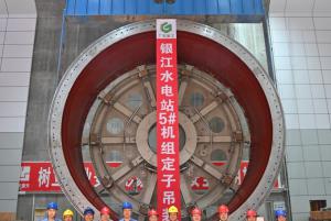 【攀水電】川投能源銀江水電站5號機(jī)組轉(zhuǎn)子與定子吊裝成功