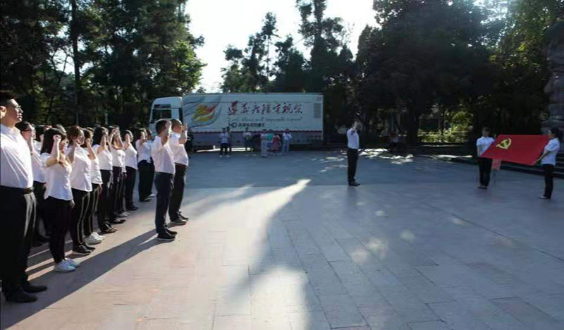 在紅軍山烈士陵園“紅軍烈士永垂不朽”紀(jì)念碑前,全體人員向紅軍烈士敬獻(xiàn)花籃、鞠躬致敬,表達(dá)對(duì)革命先烈的崇敬緬懷之情。由公司紀(jì)委書記冉蘭平領(lǐng)誓,面對(duì)黨旗重溫入黨誓詞,鏗鏘有力的莊嚴(yán)誓言激蕩在每個(gè)黨員心中。