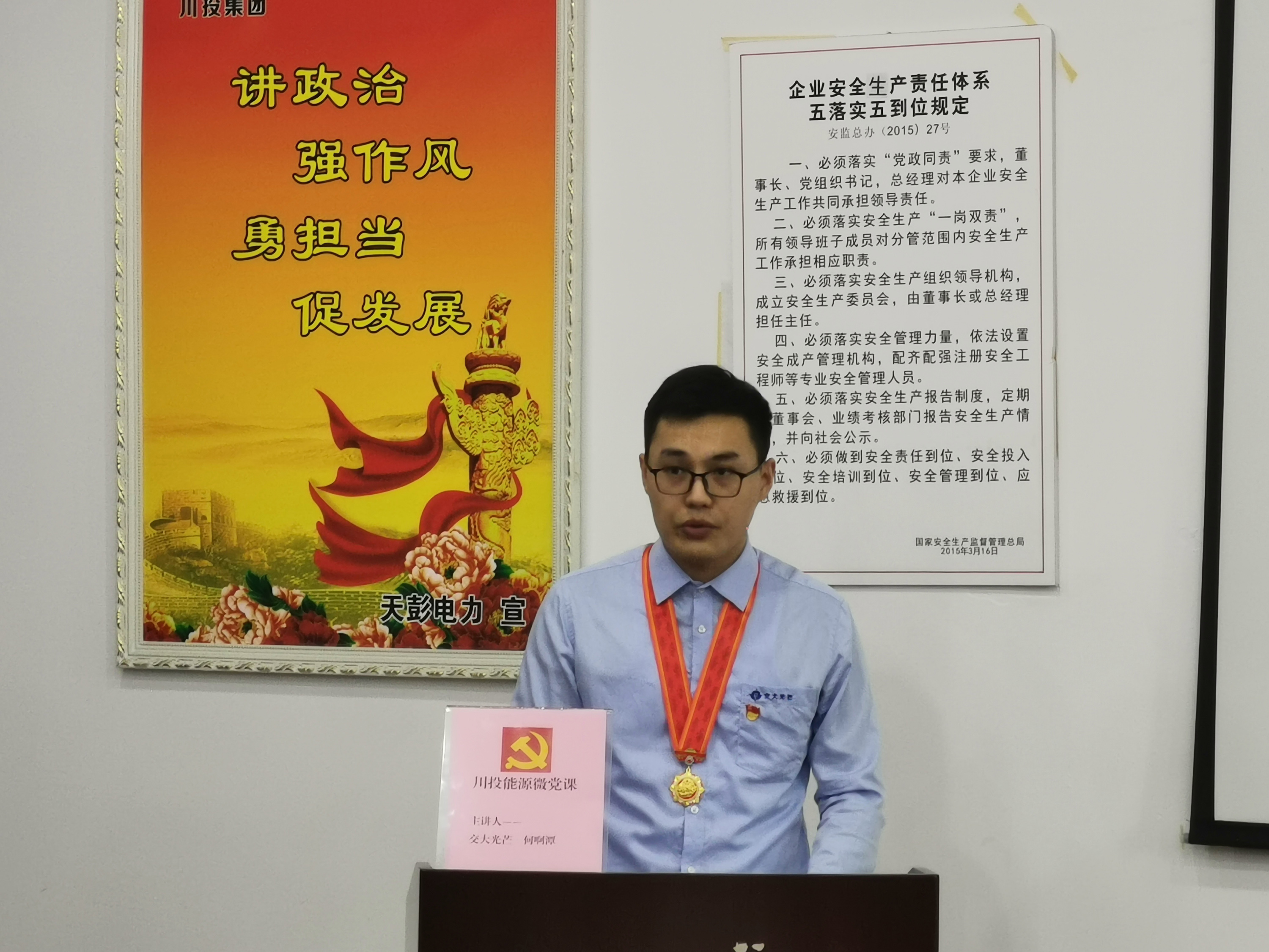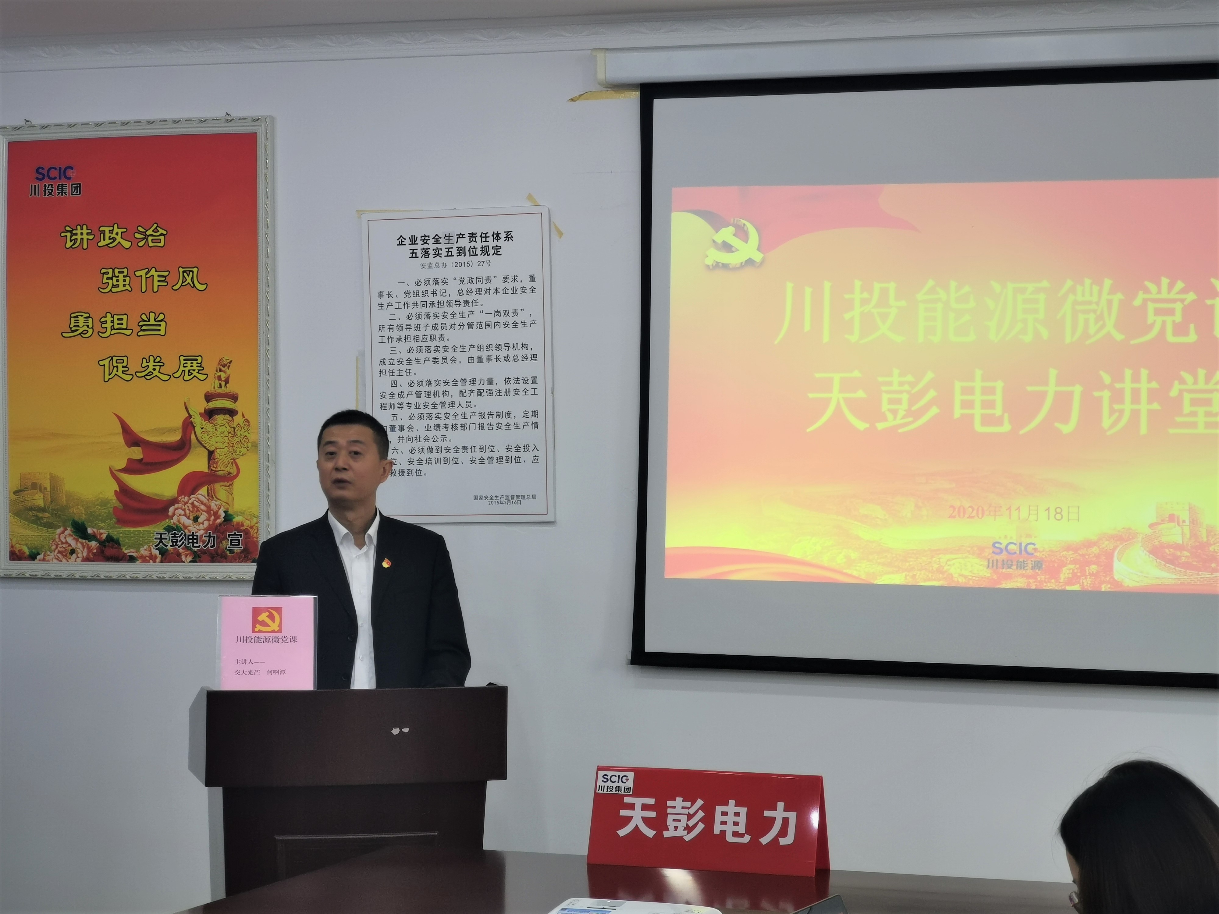 11月18日,川投能源微黨課首講在天彭電力展開,主講者是剛獲得四川省“四川省抗擊新冠肺炎疫情先進個人”光榮稱號、來自交大光芒事業(yè)二部的技術(shù)工程師何啊潭。