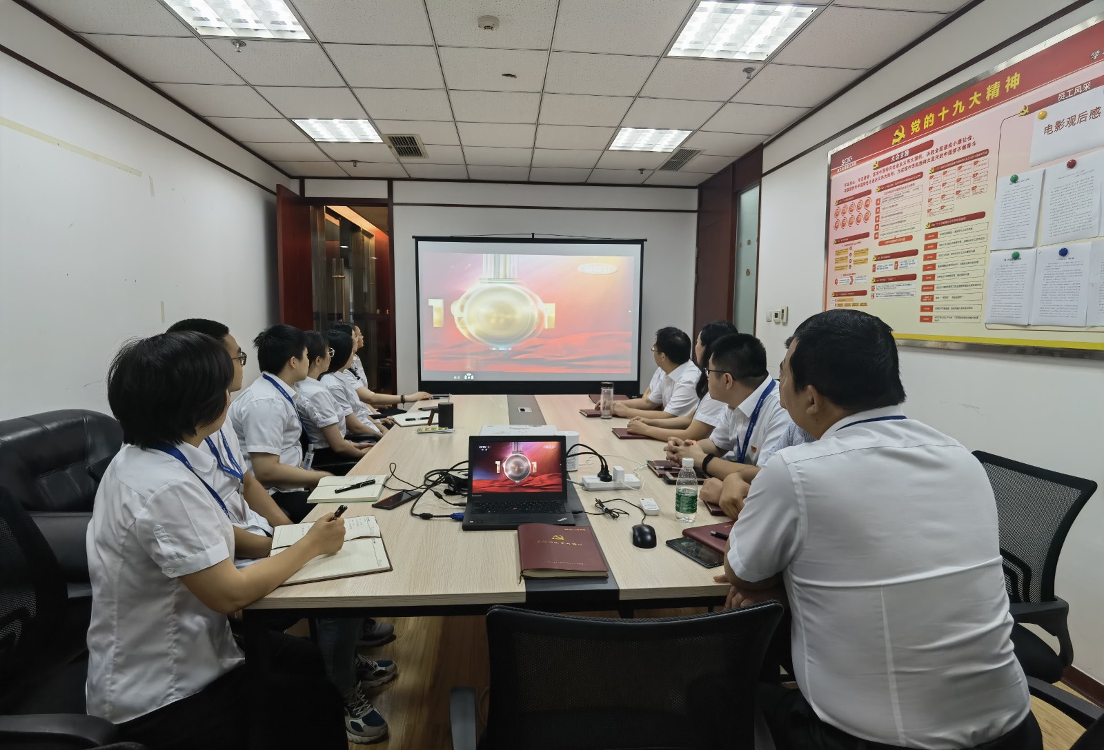 視頻中,習(xí)近平總書(shū)記鏗鏘有力的聲音深入人心,從1921到2021,中國(guó)共產(chǎn)黨帶領(lǐng)中國(guó)人民,從風(fēng)雨飄搖中一路走來(lái),百年征程波瀾壯闊,百年初心歷久彌堅(jiān)。當(dāng)《國(guó)歌》《國(guó)際歌》相繼響起的時(shí)刻,會(huì)場(chǎng)人員紛紛起立,跟隨激昂的旋律整齊高唱。當(dāng)回顧“四史”贊頌黨的偉業(yè)之時(shí),會(huì)場(chǎng)人員滿溢出對(duì)黨的感恩和身為黨員的自豪。